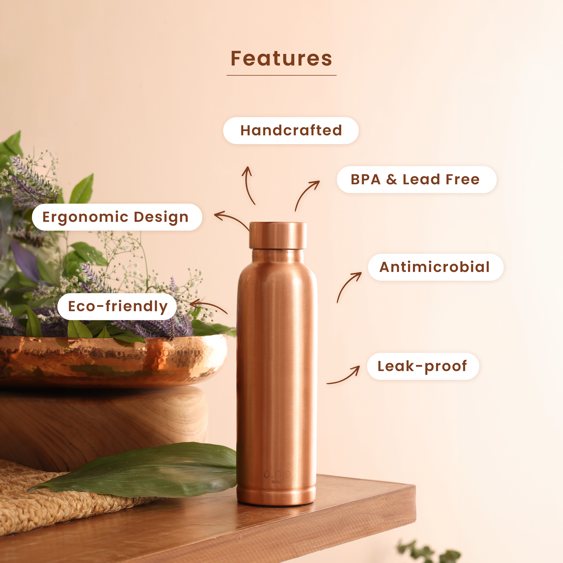 Copper Bottle | 1 Litre | Plain | Improves Digestion